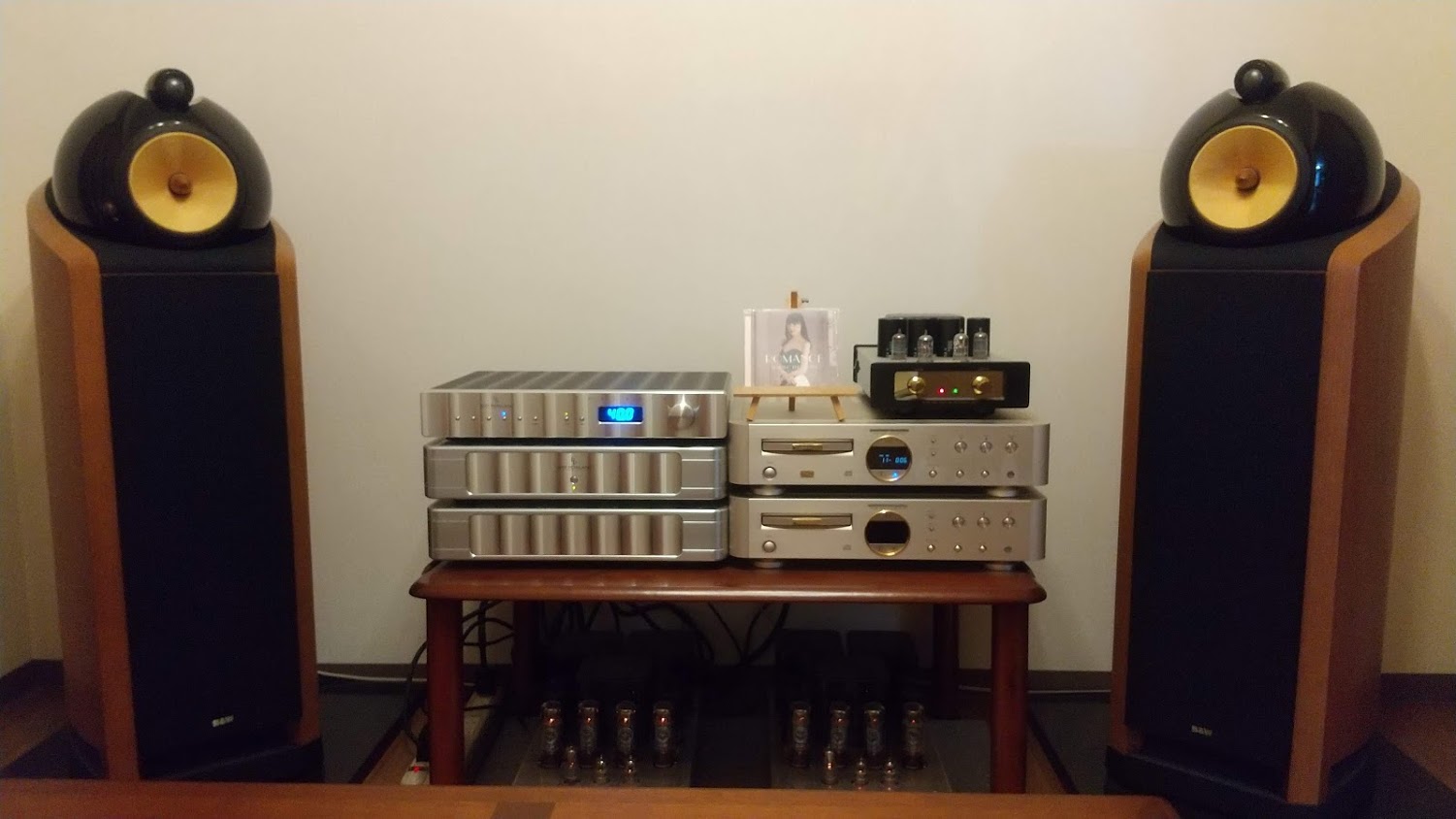 実家のシステム(JBL S2600スピーカー)の方がピアノの音はいいし、ジャズなどを聞くと、ベースの音はブンブンと鳴りが良いのですが、バイオリンの音は自宅のノーチラス802の方が圧倒的にきれいな音でした。